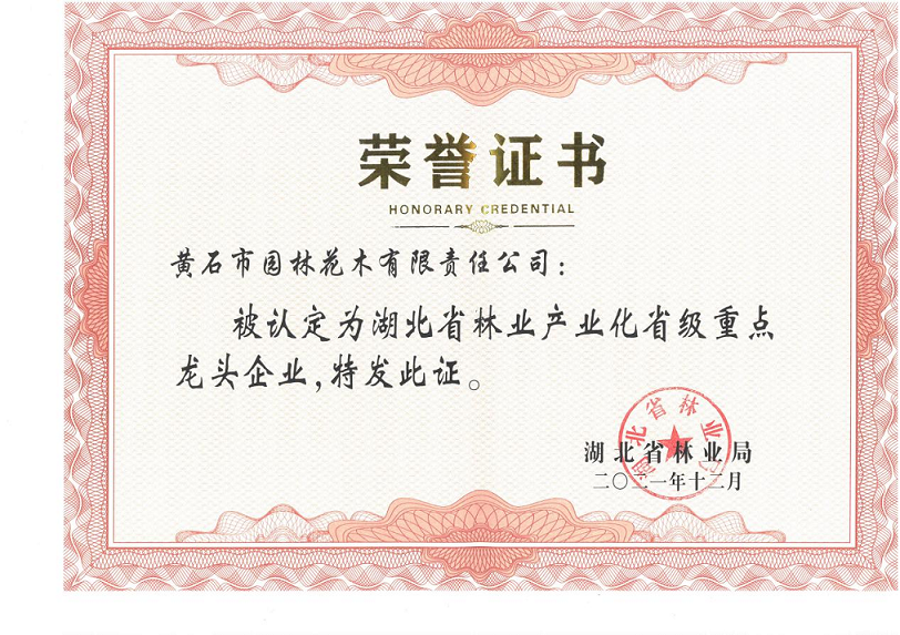 近日,黄石市园林花木有限责任公司被湖北省林业局认定为湖北省林业产业化省级重点龙头企业,这是花木公司连续两届获得此项荣誉。