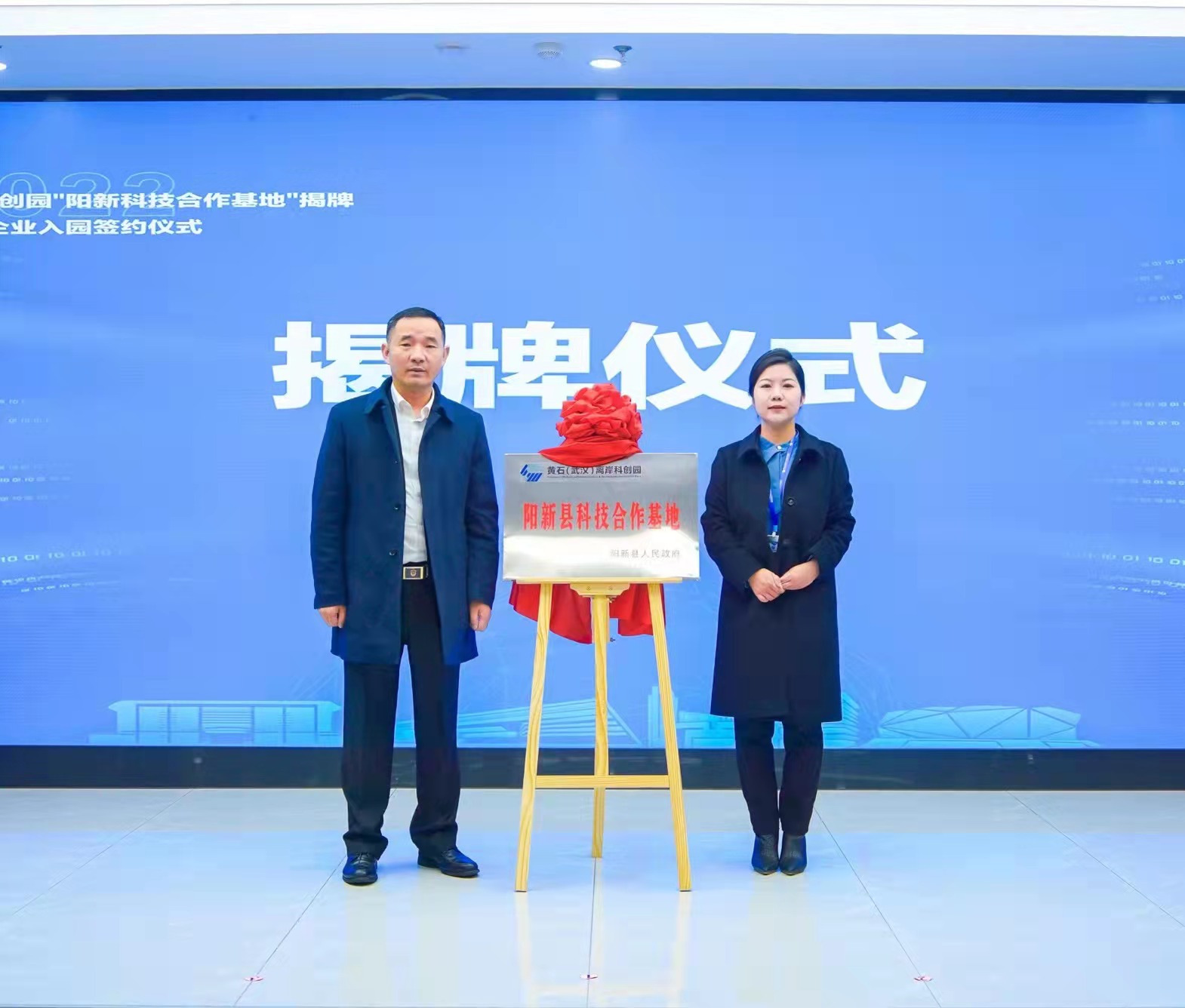 23日上午,黄石(武汉)离岸科创园“阳新科技合作基地”揭牌暨阳新企业入园签约仪式在科创园举行。阳新县副县长余正江,科技局党组书记、局长潘勇,党组成员、副局长郭建新,众创公司党支部副书记、副总经理王丽出席揭牌和签约仪式。