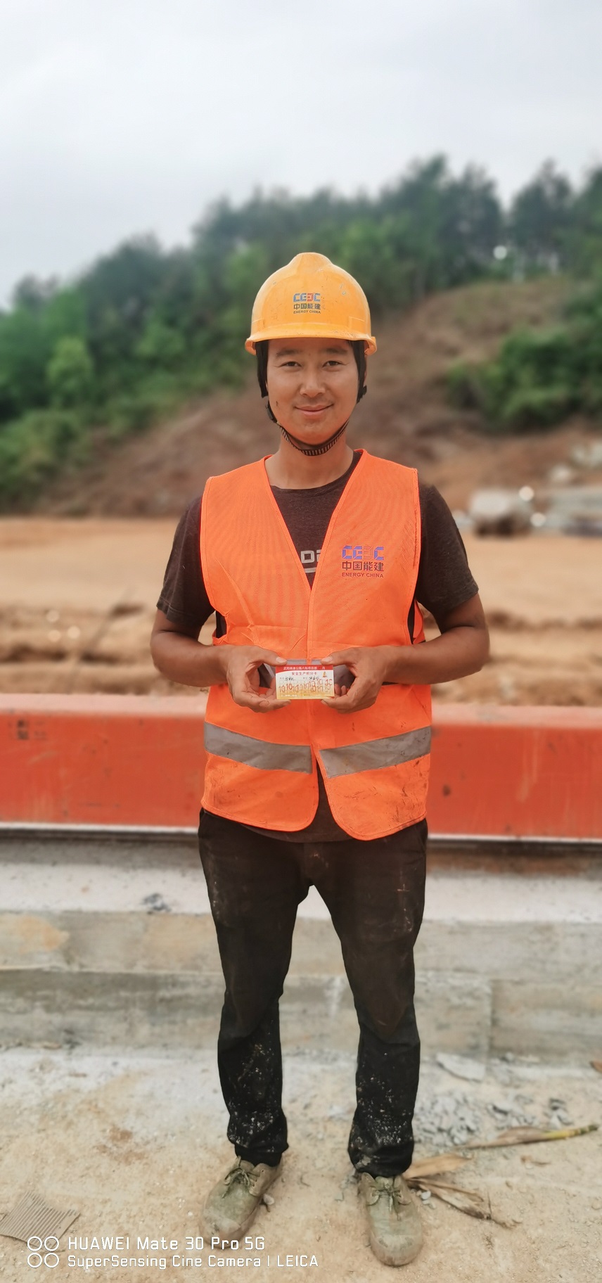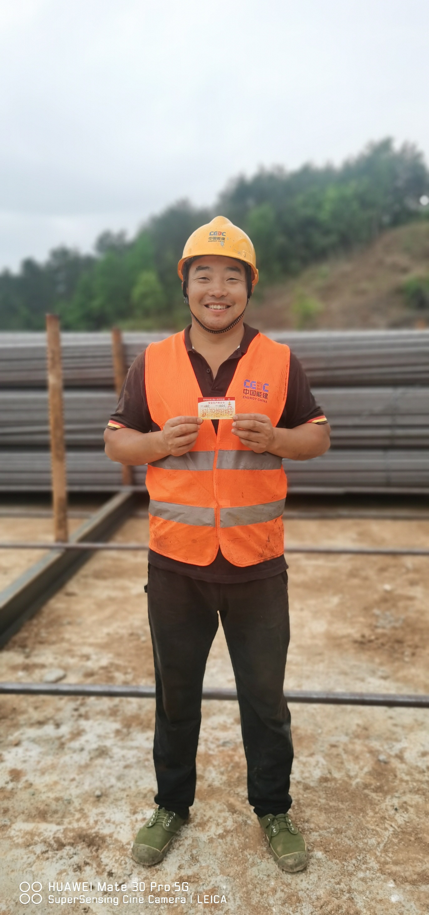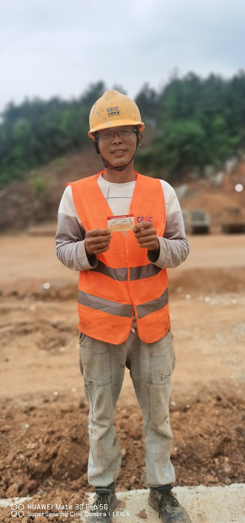 在武阳高速六分部施工现场,除了必不可少的防护装备外,每名作业人员的胸前都装着一张小小的卡片,看起来十分不起眼,却大有用途。