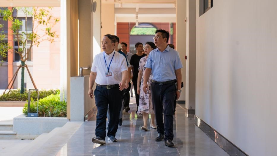 夏振千一行实地参观了学校教学楼、综合楼、学生宿舍、体育馆、图书馆等楼栋,仔细了解了学校土建、机电等配套设施安装等情况。