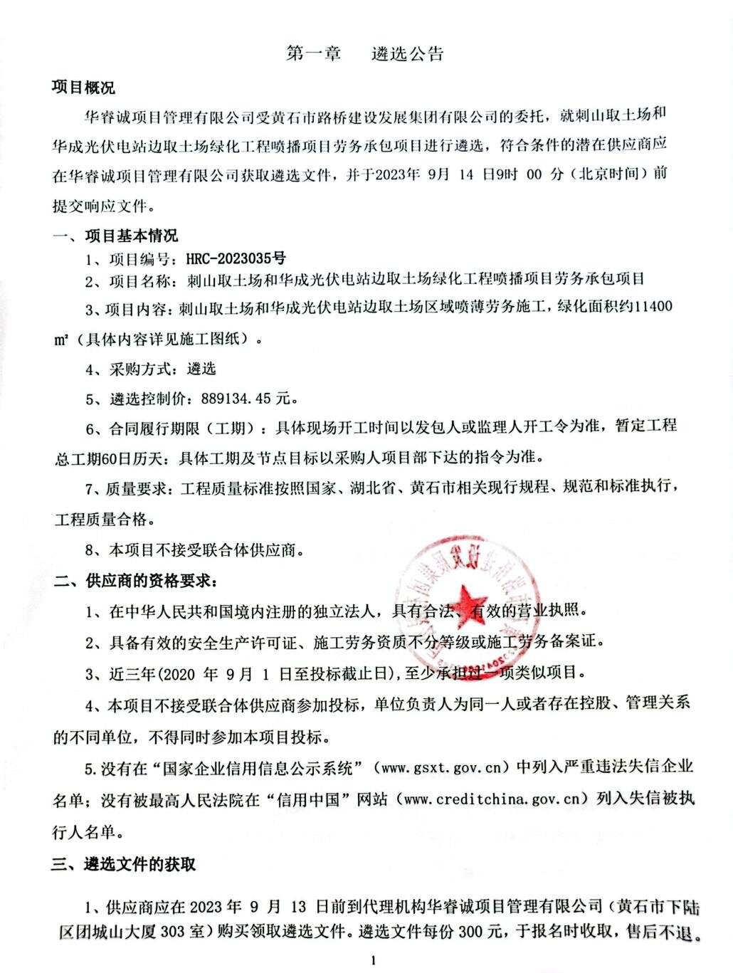 刺山取土场和华成光伏电站边取土场绿化工程喷播项目劳务承包项目遴选公告